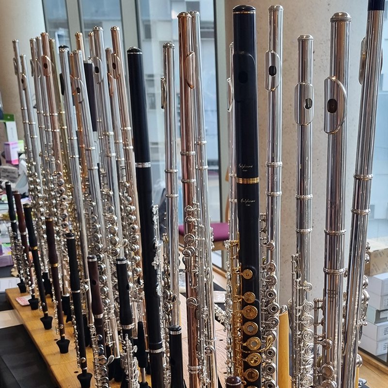 Paula visited for a single day with a particular focus on the Trade Hall, where she explored the newest professional instruments, accessories and flute-making innovations. The Trade Hall featured flutes across all price points and materials — including silver, gold and platinum — and Paula spent time trialling instruments and speaking with makers and technicians. Brands on display included Muramatsu, Altus, Powell, Haynes, Miyazawa and Yamaha, along with piccolos, alto and bass flutes, historical flutes, contemporary headjoint designs, ergonomic supports and a wide range of specialist accessories.