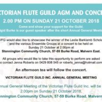 Victorian Flute Guild AGM and Concert – 21 October 2018 The Victorian Flute Guild held its Annual General Meeting and concert on Sunday 21 October Read More …