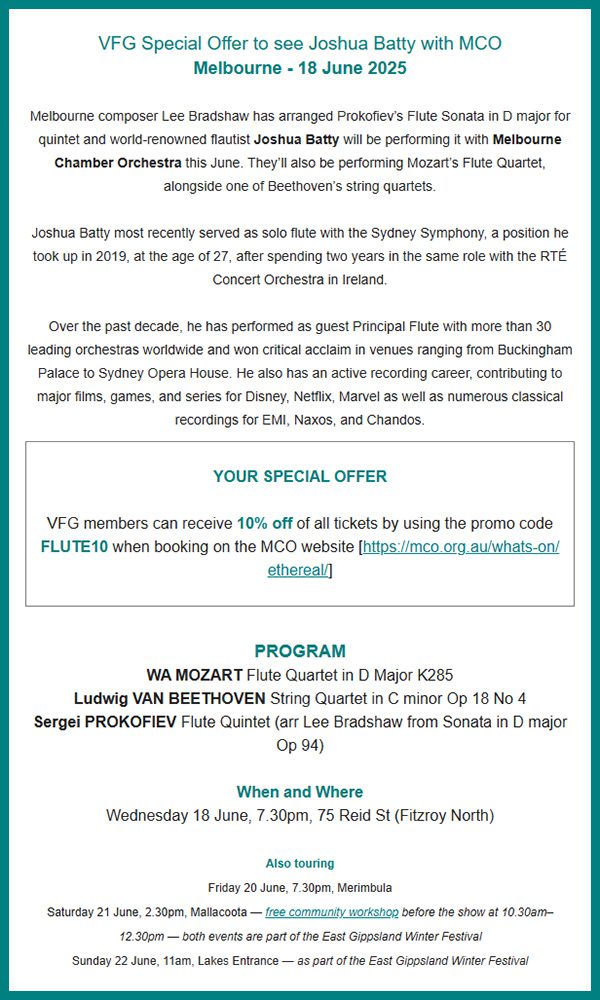 Enjoy 10% off tickets to the Melbourne performance with promo code FLUTE10 at mco.org.au